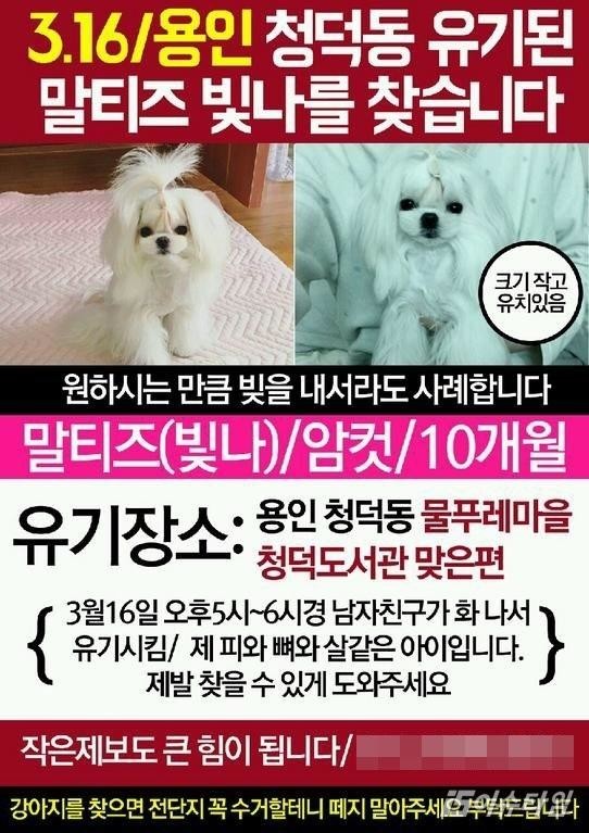 남자친구가 일부러 유기해 반려견을 잃어버린 보호자가 강아지를 찾고 있다.[사진=온라인 커뮤니티]