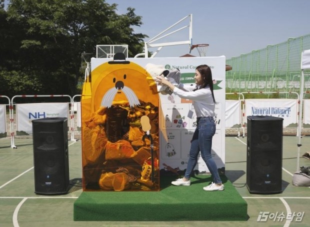2016 안산 펫케어페스티벌에서 한 참관객이 입지 않는 옷을 리본캠페인에 기부하고 있다.[사진=와이낫스튜디오]