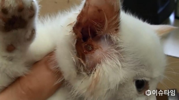 (이슈타임)김담희 기자=아기 고양이 귓속에 기생하면서 속 살을 파먹는 말파리 유충을 꺼내는 수의사의 영상이 공개됐다. 최근 미국 온라인 매체 awm은 동물병원에서 치료받는 아기 고양이의 사연과 영상을 보도했다. 동물보호단체 '벤 렌치(Vet Ranch)'의 수의사 카리는 길에서 떠돌던 작은 아기 고양이를 구조해 치료했다. 기본적인 검사를 마친 카리는 아기 고양이의 귓속에서 커다란 기생충이 살을 파먹고 있는 것을 확인했다. 자칫 잘못하면 아기 고양이가 목숨을 잃을 수도 있는 상황으로 카리는 급히 수술에 들어갔다. 귓속 피부밑에 자리 잡은 기생충을 핀셋으로 끄집어냈고 성인 손가락 한 마디 크기의 말파리 유충이 모습을 드러냈다. 다행히 아기 고양이는 수술 후 건강을 회복 중이며 동물구호단체에서 치료를 받고 있다. 한편 아기 고양이 귀에서 나온 기생충은 말파리 유충(Cuterebra)으로 보통 동물의 피부에 알을 낳으며 피부 아래서 자라나 부어오르게 만든다. '