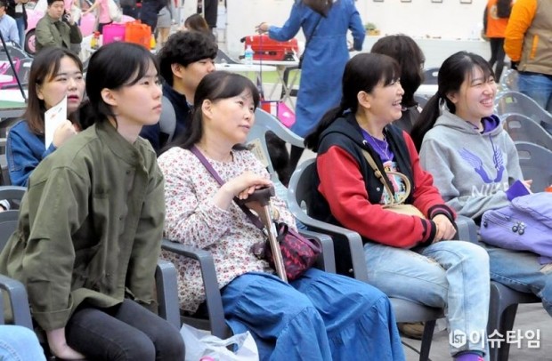이민영 교수의 반려견 미용 시연을 지켜보는 관람객들[사진=김희영 기자]