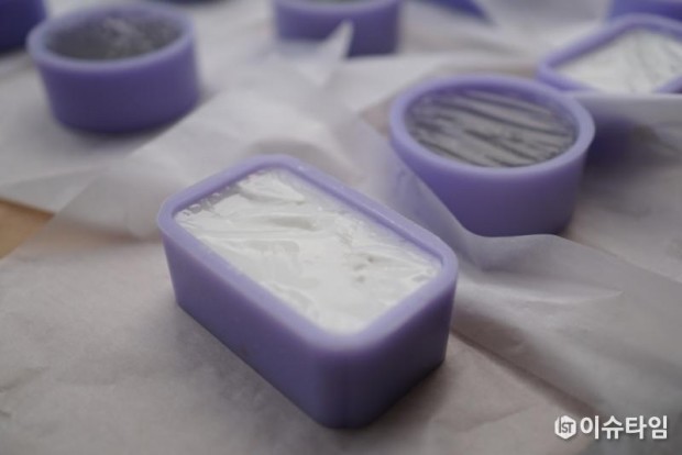 점점 굳어가고 있는 천연 비누들.[사진=박혜성 기자]