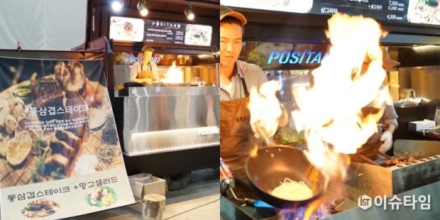 통삼겹 스테이크, 망고 샐러드 부스.[사진=이경희 기자]