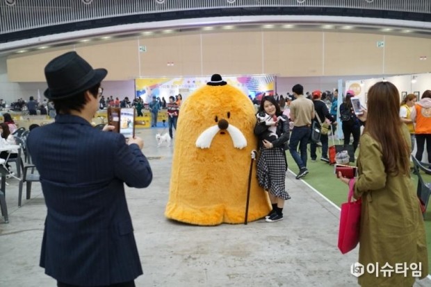 (이슈타임)박혜성 기자=2017 인천 국제 펫케어페스티벌이 열리고 있는 인천 송도 컨벤시아에 행사의 마스코트 '그랜파피'가 나타나 큰 인기를 누리고 있다. 그랜파피는 반려동물과 함께 '생명존중'행복공존' 세상을 꿈꾸는 소망을 담은 캐릭터로, 지난해 5월 개최된 안산 펫케어페스티벌 때부터 행사의 공식 마스코트로 사용돼왔다. 갑자기 나타난 그랜파피를 본 관람객들은 함께 사진을 찍으며 즐거운 시간을 보냈다. 특히 그랜파피는 어린이 관람객들의 시선을 집중시키며 큰 사랑을 받았다. '
