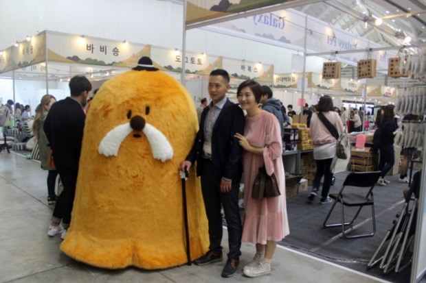 김미려가 인천 국제 펫케어페스티벌 이곳저곳에 방문하며 방문객과 부스 관계자들과 기념 사진을 촬영했다.[사진=김담희 기자]