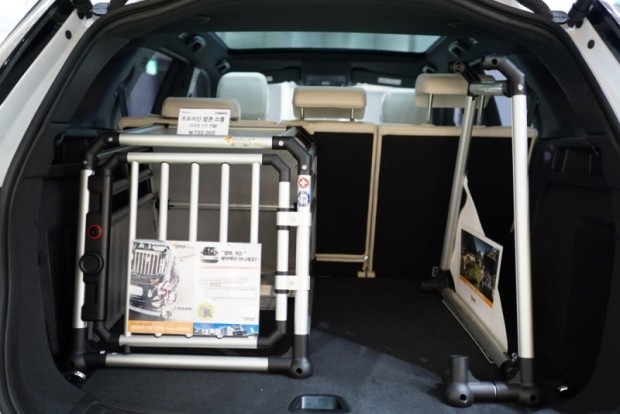 디스커버리 스포츠는 컴팩트 SUV지만 넓은 적재공간을 갖추고 있어 다양한 반려동물 용품을 실을 수 있다.[사진=박혜성 기자]