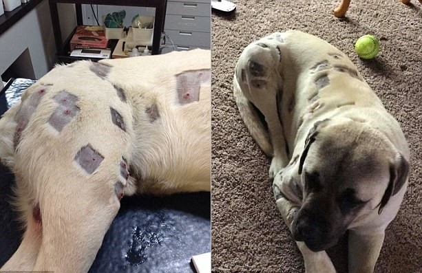 이웃 남성에게 비비탄과 쇠구슬을 맞은 반려견 잭슨[사진=Daily Mail]