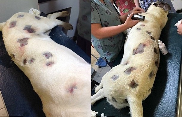 강아지 몸에 박힌 총알 27개 제거 했지만 아직 20여 개 더 남아있는 것 추정
