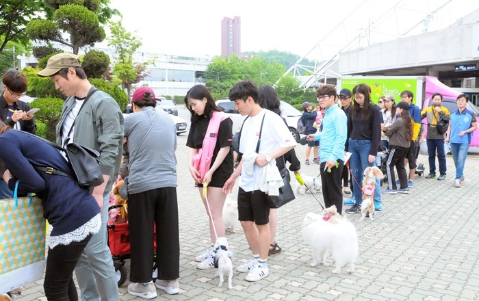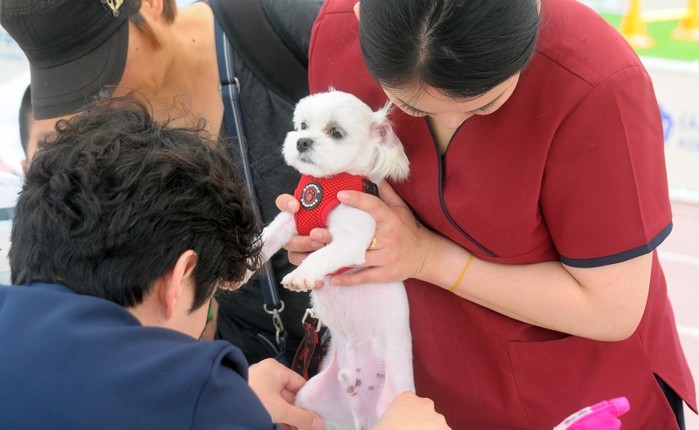 행사장서 진행된 반려동물 건강검진 부스에 관람객이 반려견과 함께 방문했다.[사진=김희영 기자]