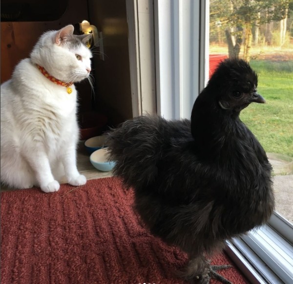 고양이와 닭의 남다른 우정 사진이 공개돼 눈길을 끌고 있다.[사진=scruffles_fatcat SNS ]