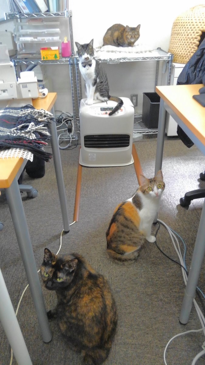 일본에 한 IT회사가 고양이와 함께 출근할 수 있도록 해 눈길을 끌었다.[사진=V and Ume]