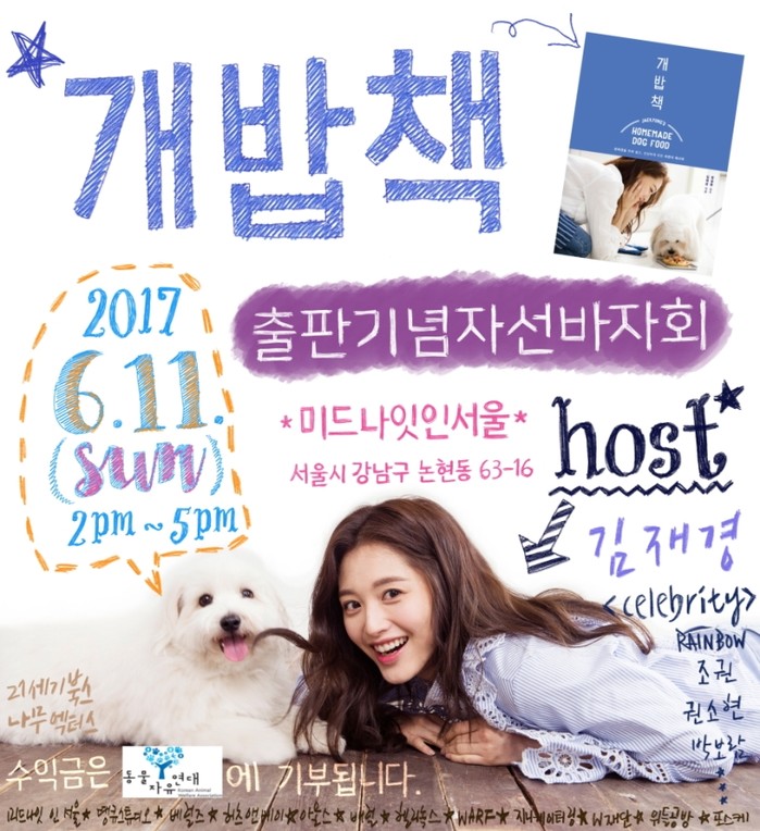 (이슈타임)이유나 기자=가수 겸 배우 김재경이 '개밥책' 출판기념 자선바자회를 개최한다. ' 지난달 25일 김재경은 '개밥책 - 반려견을 위해 쉽고, 건강하게 만든 자연식 레시피'를 출간해 화제를 모았다. 이와 관련해 김재경은 오는 6월 11일 서울 강남구 논현동 '미드나잇 인 서울'에서 출판기념 자선바자회를 개최한다. ' 김재경은 반려견에 대한 애정으로 다양한 기부 활동에 참여하며 동물들에 대한 사랑을 몸소 실천해오고 있다. 이번 자선바자회 역시 김재경이 기획하고 적극적으로 추진한 것으로 알려져 눈길을 끌고 있다. 김재경은 포스터 제작부터 스타들의 애장품 수거 및 브랜드 섭외까지 직접 발 벗고 나선 것은 물론 손수 만든 제품을 준비해 바자회'개최의 의미를 더했다. ' 이날 김재경의 초대로 각자 활발히 개인 활동을 이어가고 있는 레인보우 멤버들을 비롯해 권소현, 조권, 박보람 등 많은 셀럽이 동참한다. ' 현장에서는 반려견용 간식, 의류, 하우스 등 다양한 용품을 구입할 수 있다. 반려견 목줄, 디퓨저, 탈취제, 진드기 퇴치제, 노트 등 바자회를 위해 김재경이 직접 만든 핸드메이드 제품도 판매대에 오른다. 목줄은 권소현이 함께'제작에 참여했다.' 애견용품 이외에도 스타들이 기증한 개인 소장품과 캠핑용품, 레저용품 등이 함께 판매되어 견주가 아니더라도 누구나 행사를 즐길 수 있다. 이 밖에도 럭키드로우, 강아지 그림 옷 프린트, 사진 촬영 이벤트 등의 부대 행사와'간단한 먹거리가 마련될 예정이다. ' 김재경은 책 판매 및 바자회를 통한 수익금 전액을 기부한다고 밝혔다. 여기에 참가자들의 수익금이 더해져 동물'보호 시민단체인 동물자유연대에 전달할 예정이다. '