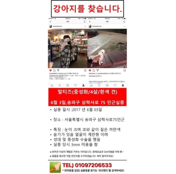 별이가 실종된 줄 알고 A씨가 만들어 붙인 전단지.[사진=anastasia_eun SNS]