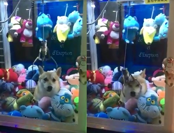 강아지를 인형뽑기 안에 가둔 영상이 올라와 동물학대 논란이 일었다.[사진=페이스북 영상 캡처]