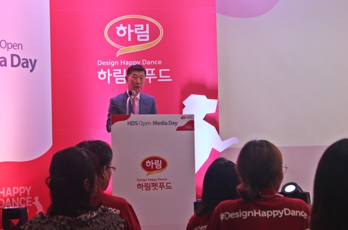 펫푸드 '더 리얼' 출시 소감을 전하는 하림그룹 김홍국 대표.[사진=김담희 기자]