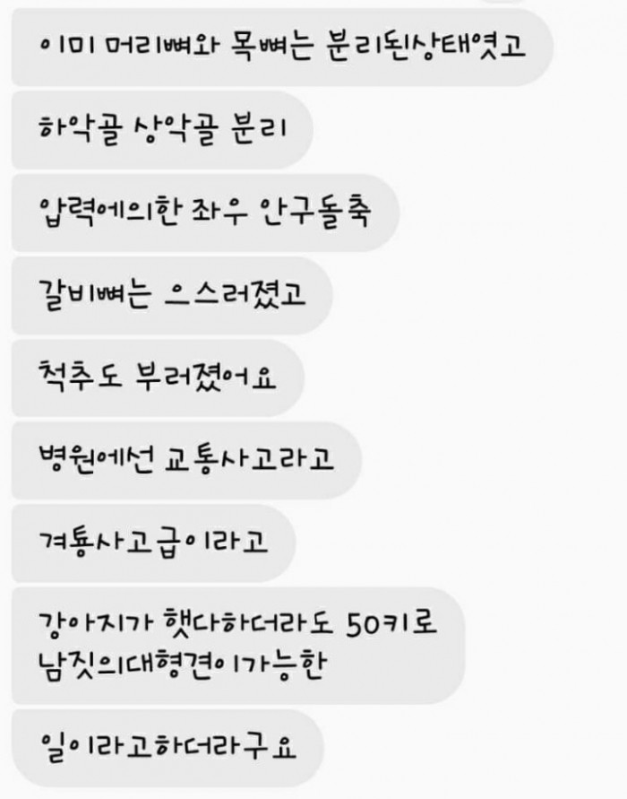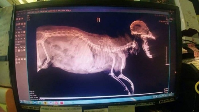 강아지 사체는 머리와 목이 분리되고 갈비뼈가 으스러지는 등 큰 부상을 입었다.[사진=온라인 커뮤니티] |