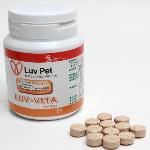 '러브비타'는 천연 허브 추출물로 만들어진 종합비타민으로 강아지와 고양이에게 유익한 비타민과 천연 생리 활성화물이 다량으로 함유된 영양제다.