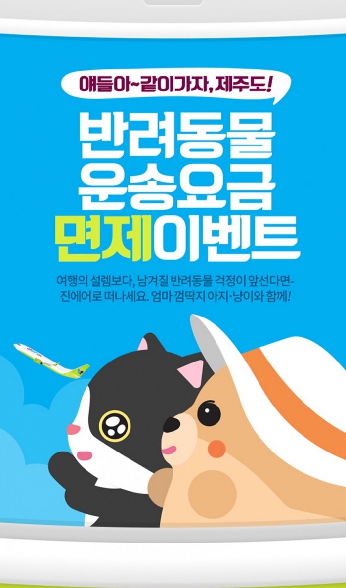 이벤트 기간은 출발일 기준 4일부터 오는 31일까지다. 행사 기간 동안 삼성카드 애플리케이션 '아지냥이'이용자가 김포에서 제주까지, 제주에서 김포까지 진에어를 탑승하면 반려동물 1마리 기내 반입 운송요금을 면제해준다.