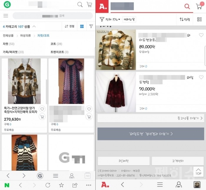 국내 오픈마켓에서 와일드캣 모피 코트가 판매돼 논란이 일었다.[사진=네이버 블로그 '엘군73'/'오챙챙'] |
