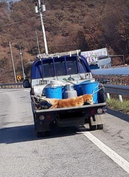 지난해 12월 1일 1t 트럭 화물칸에 개의 목과 다리를 줄로 고정해 달리는 사진이 페이스북에 공개되면서 동물 학대 논란이 일었다.