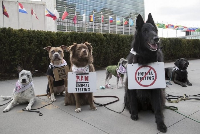 더바디샵이 UN 뉴욕 본부 앞에서 동물실험반대를 촉구하는 시위를 벌였다.[사진=The Body Shop] |