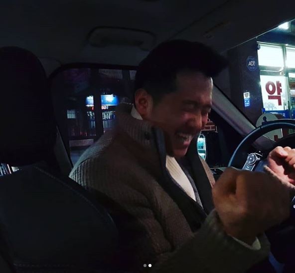 사진 속의 강형욱은 운전석에 앉아 축하의 세레모니를 하는 모습이 담겼다.
