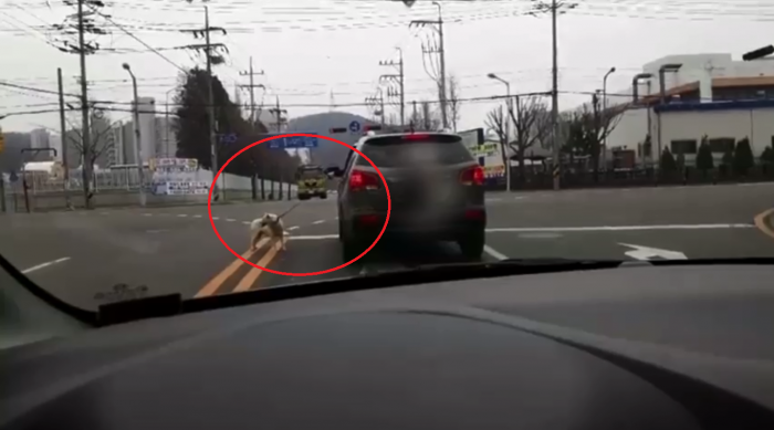 지난 17일 SNS에는 경기도 안산에서 한 SUV 운전자가 창밖으로 개 목줄을 끌고 운전하는 모습이 담긴 영상이 올라왔다.