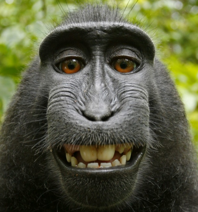 동물단체 '동물에 대한 윤리적 처우를 지지하는 사람들(PETA)'이 지난해 이 사진에서 발생한 수익을 나루토를 위해 쓸 수 있도록 PETA를 저작권 관리인으로 지정해 달라는 청구 소송을 제기했지만 원숭이에게는 저작권이 없다는 판결이 내려졌다.