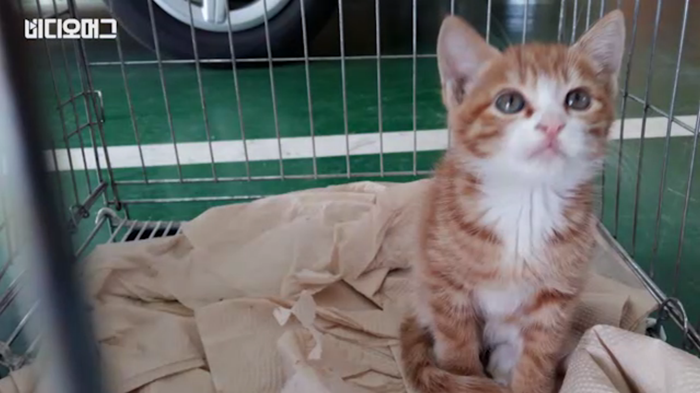 헬스장 벽에 갇혀있던 새끼고양이가 구출됐다.[사진=SBS 비디오머그 캡처] |