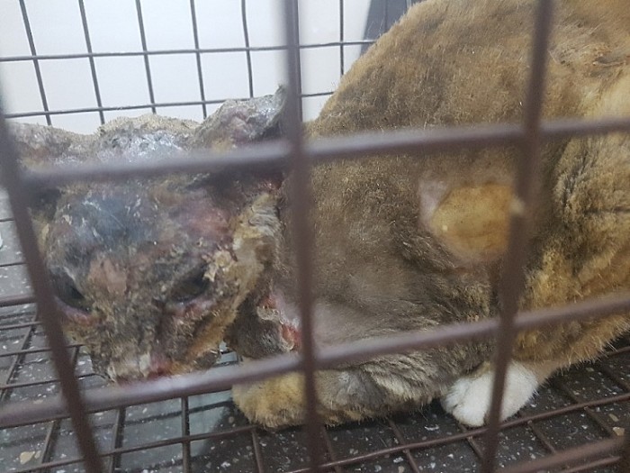경기도 김포시 감정동에서 구조된 고양이는 한눈에 봐도 심각한 정도의 화상을 입었다.