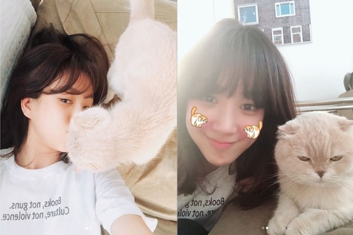 정려원이 반려묘 얄리와 행복한 한 때를 공개했다.[사진=정려원 SNS] |
