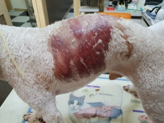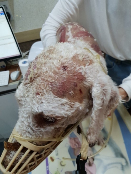 애견호텔에 맡겨뒀던 반려견 뭉개가 피투성이로 발견됐다.[사진=온라인 커뮤니티] |