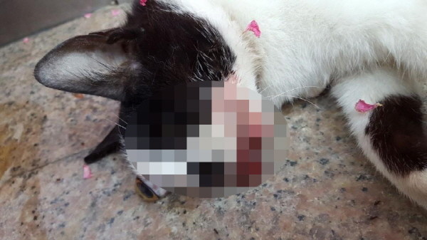 부산 길고양이 보호연대에 따르면 지난 26일 오전 "길고양이가 피를 토하며 죽은 상태에서 한쪽 눈까지 뽑혀 있다"는 제보가 접수됐다.