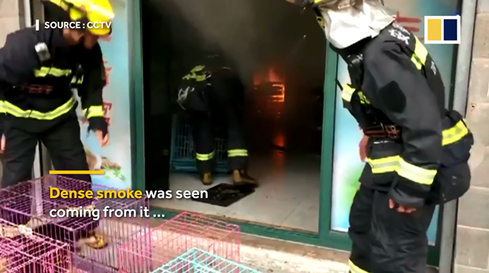 5일 중국 안후이성 허페이에 있는 애견숍에서 불이 났다.[사진=youtube 'South China Morning Post' 캡처] |