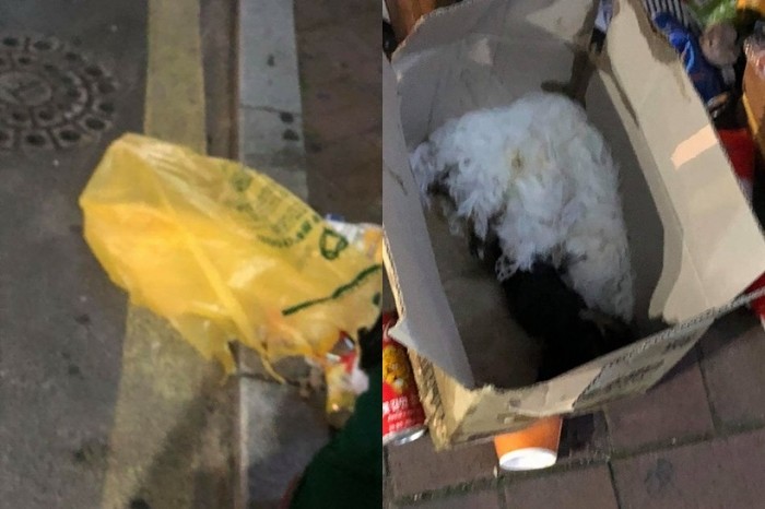 진주에서 강아지 두마리가 쓰레기봉투에 담겨 버려졌다.[사진=강경모 SNS] |