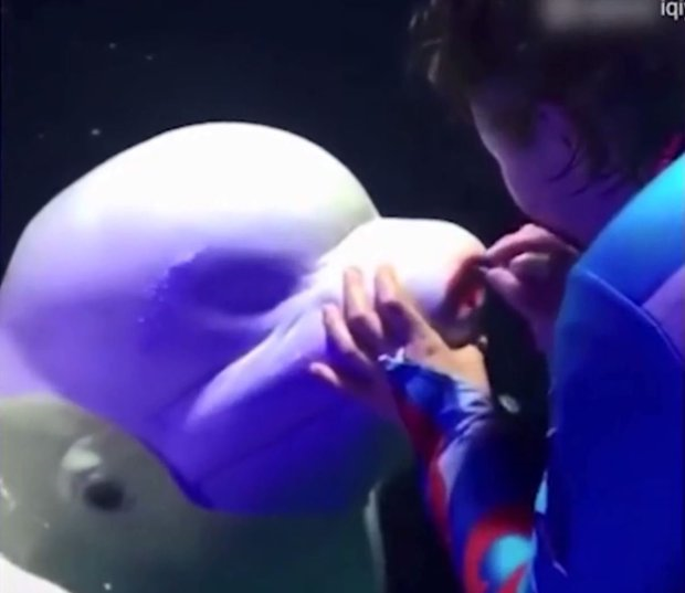 벨루가 돌고래에게 립스틱을 바르는 영상이 온라인에 공개되면서 논란이 일고 있다.[사진=Metro] |