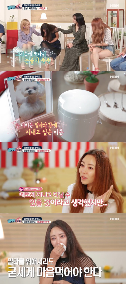 이본의 반려견 밀라가 세상을 떠나 이본이 그리움에 눈물을 보였다.[사진=MBN '비행소녀' 방송 캡처] |