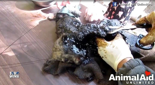 타르는 시간이 지나면 굳기 때문에 강아지 7마리는 옴짝달싹 못하게 됐다.