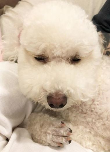 사진 속 반려견 퓨리는 앞발을 내밀며 네일관리를 해달라는 요념한 포즈를 취하고 있었다. 침대에서 앉아서 네일을 받고 싶은 표정을 하며 실눈뜨고 있는 퓨리의 모습을 본 팬들은 "진짜 귀엽다", "자상한 퓨리아빠" 등의 반응을 보였다.