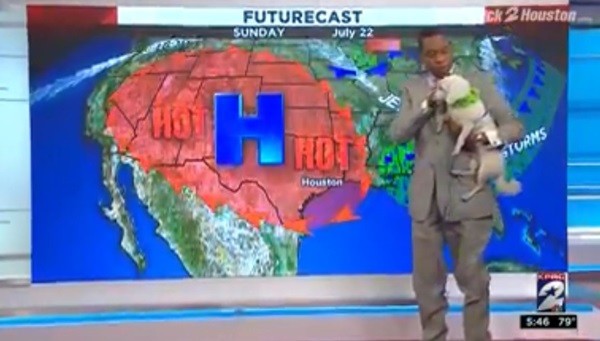 지난 22일 일요일 텍사스 휴스턴 뉴스 방송국에서 주말 날씨를 예보하던 캄브렐 마샬 기상 캐스터는 평소와 같이 방송을 하고있었다. 그런데 갑자기 예상치 못한 일이 발생했다. 방송 중 갑자기 흰색 강아지가 방송현장으로 들어오는 사건이 일어났다.