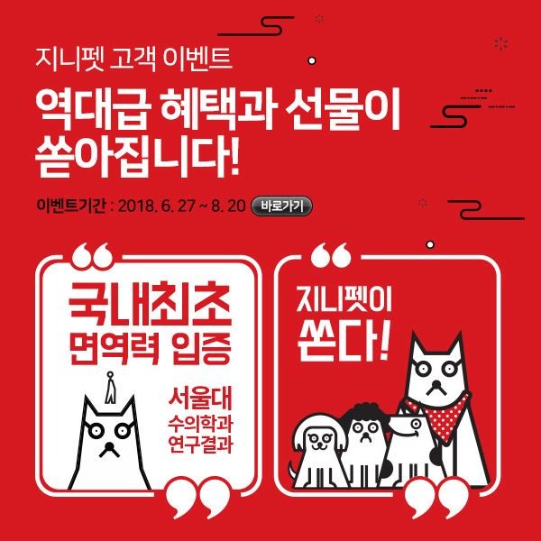 KGC인삼공사의 반려동물 건강식 브랜드 ‘지니펫’이, 홍삼이 반려견의 면역력 증진에 도움이 된다는 사실이 입증된 것을 기념해 다음달 20일까지 다양한 행사를 진행한다고 1일 밝혔다.