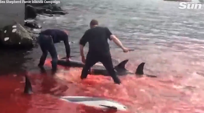 외신 보도 매체 `THE SUN`은 지난 7월 30일 페로 제도에서 고래학살 문화가 자행되고 있는 현장을 담은 영상을 공개했다.