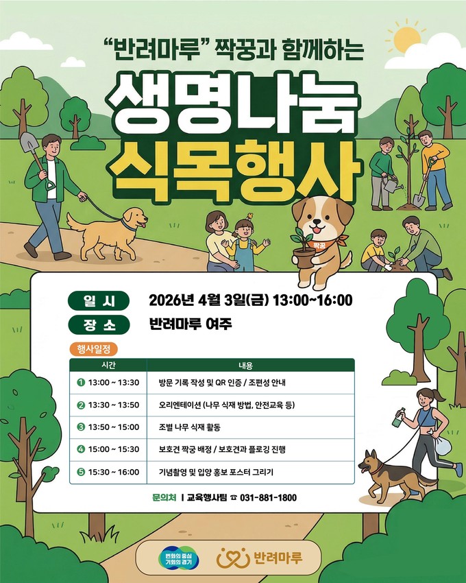 경기도, 1분기 반려동물 입양주간 맞아 펫리더스 봉사단과 함께 식목행사 등 열어